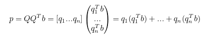 만약 m = n(square matrix)일 경우 : p = QQ’b = Ib = b