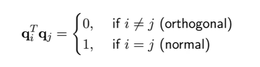 정의 : q1, q2, …., qn 이 orthonormal하다고 가정하면